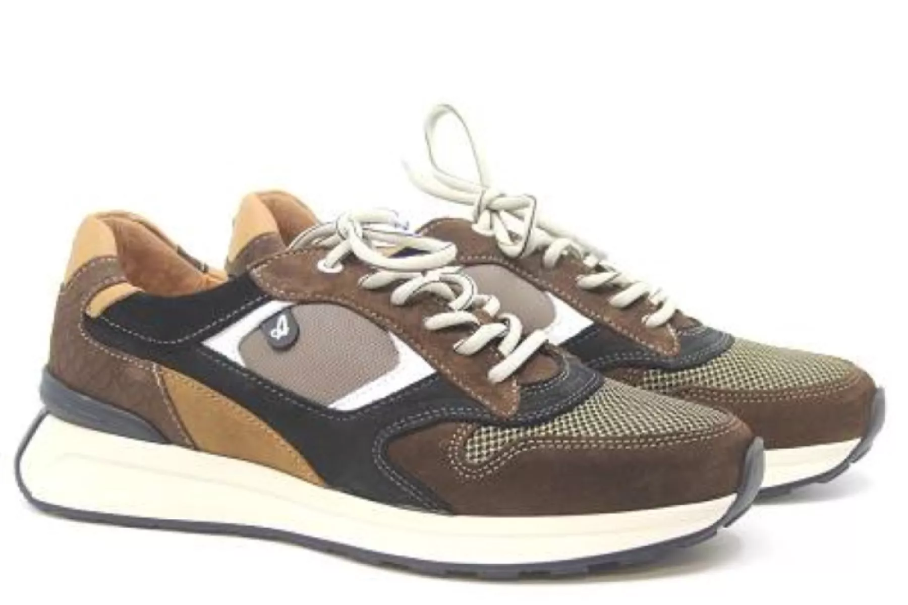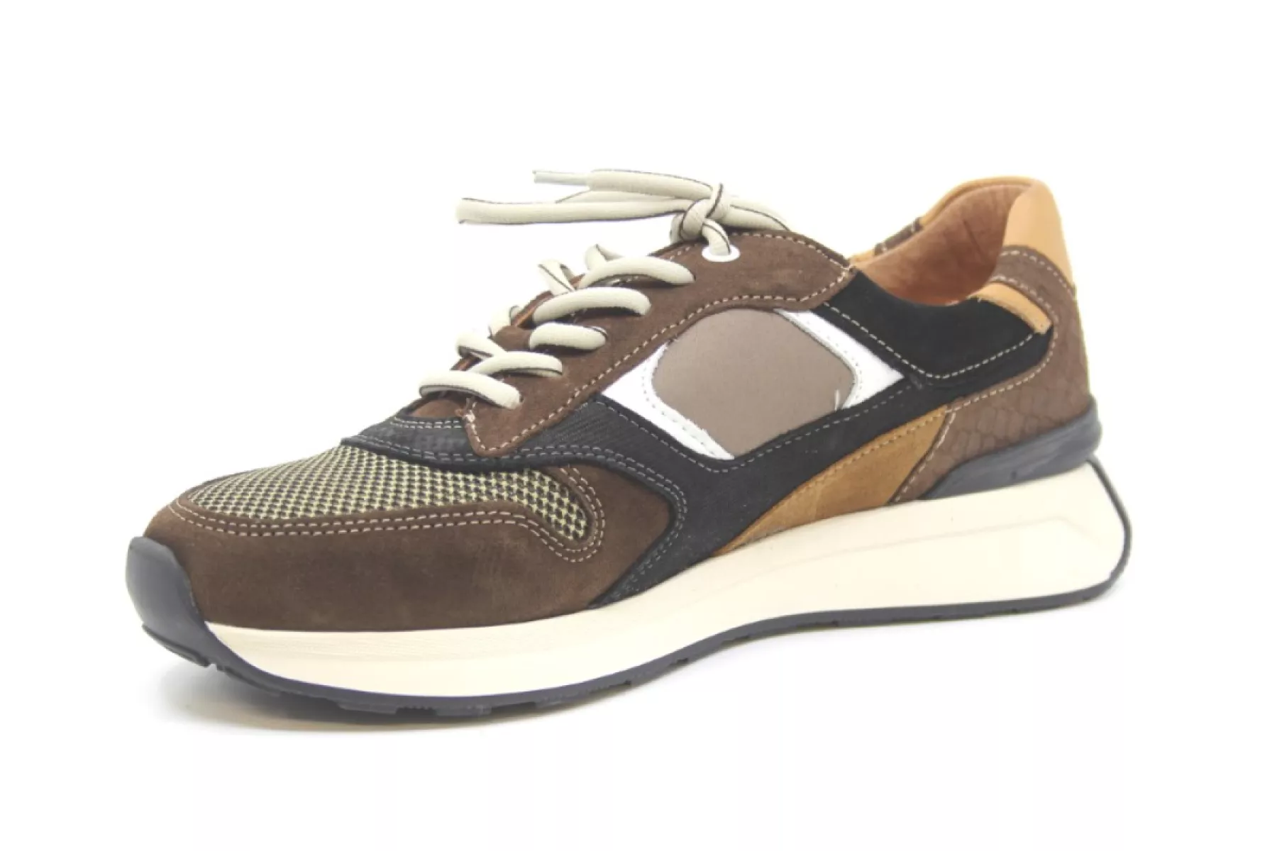 Het model Kyoto van Australian is een vlotte leren bruin combi sneaker in wijdte G met een uitneembaar voetbed.