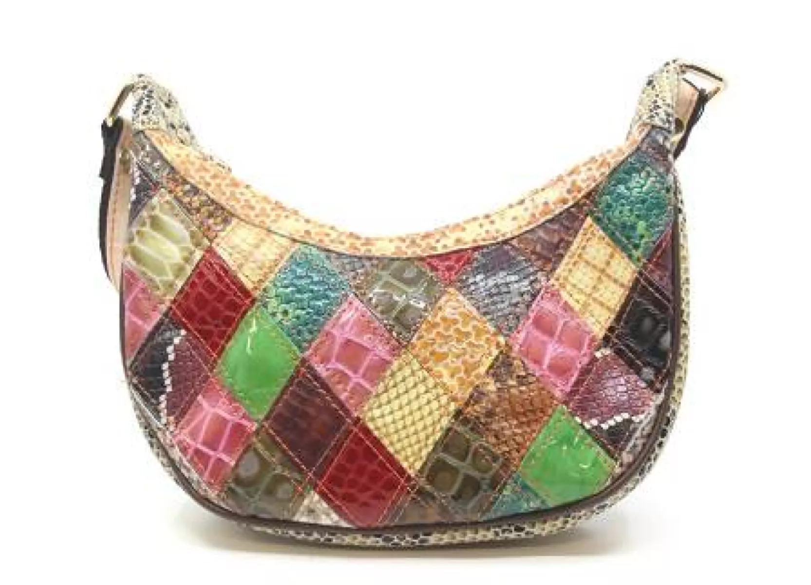Prachtige kleine leren multicolor/patchwork tas.