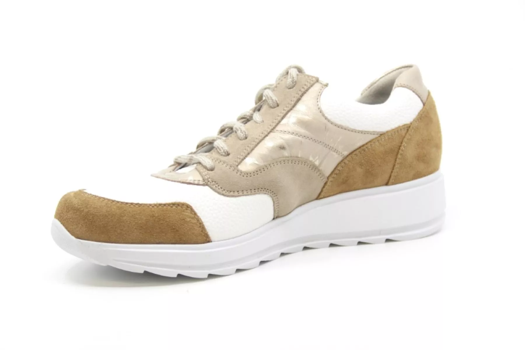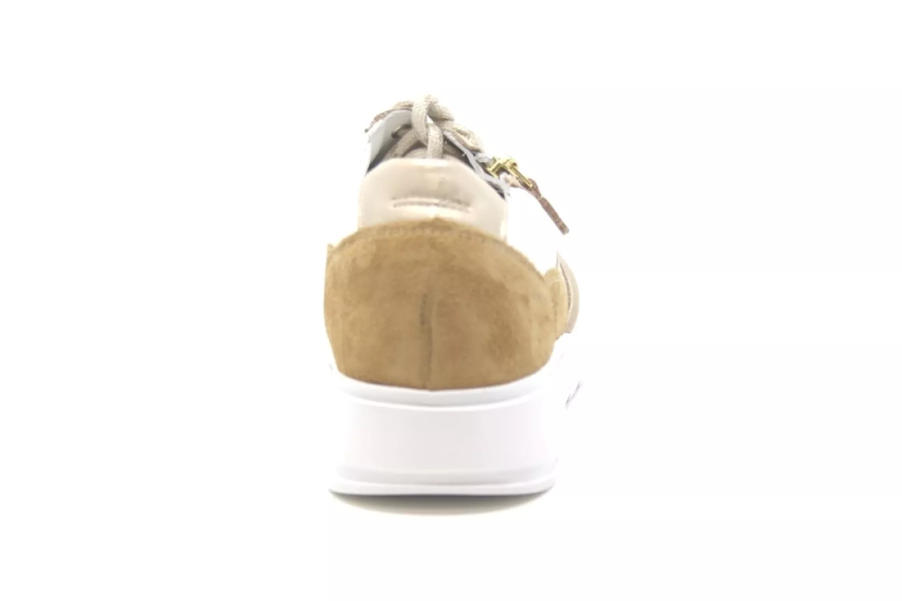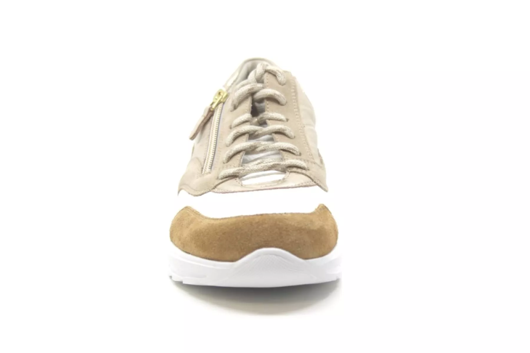 Model 6279 wijdte E van Durea is een comfortabele mooie cognac/wit combi kleurige sneaker met rits. Deze sneaker is gemaakt van mooi kwaliteit leer en heeft een uitneembaar voetbed.