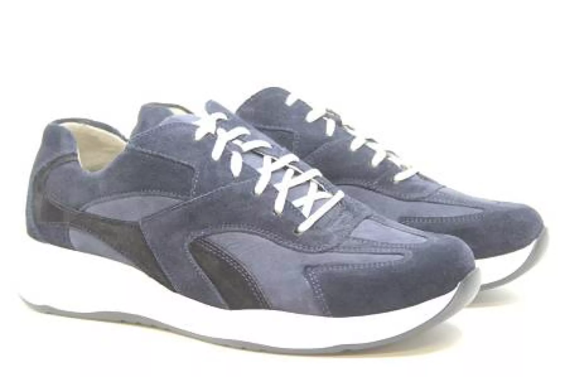 Sneaker in het donkerblauw suède met een uitneembaar voetbed.
