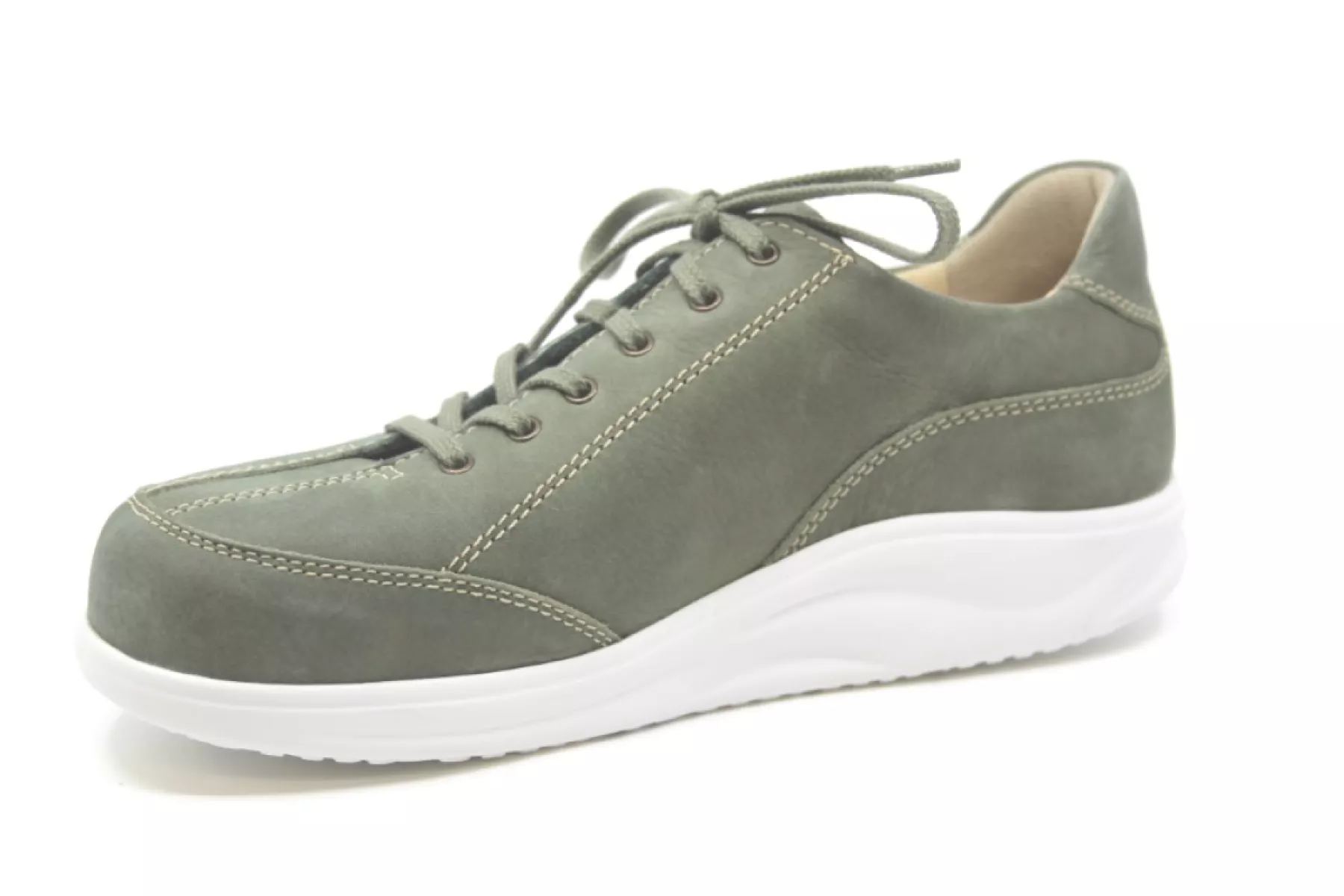 Model Otaru van FinnComfort is een trendy groen nubuck veterschoen met een uitneembaar kurken voetbed. Otaru komt uit de Finnamic lijn en heeft een extra boogondersteuning en een fijne afwikkeling.