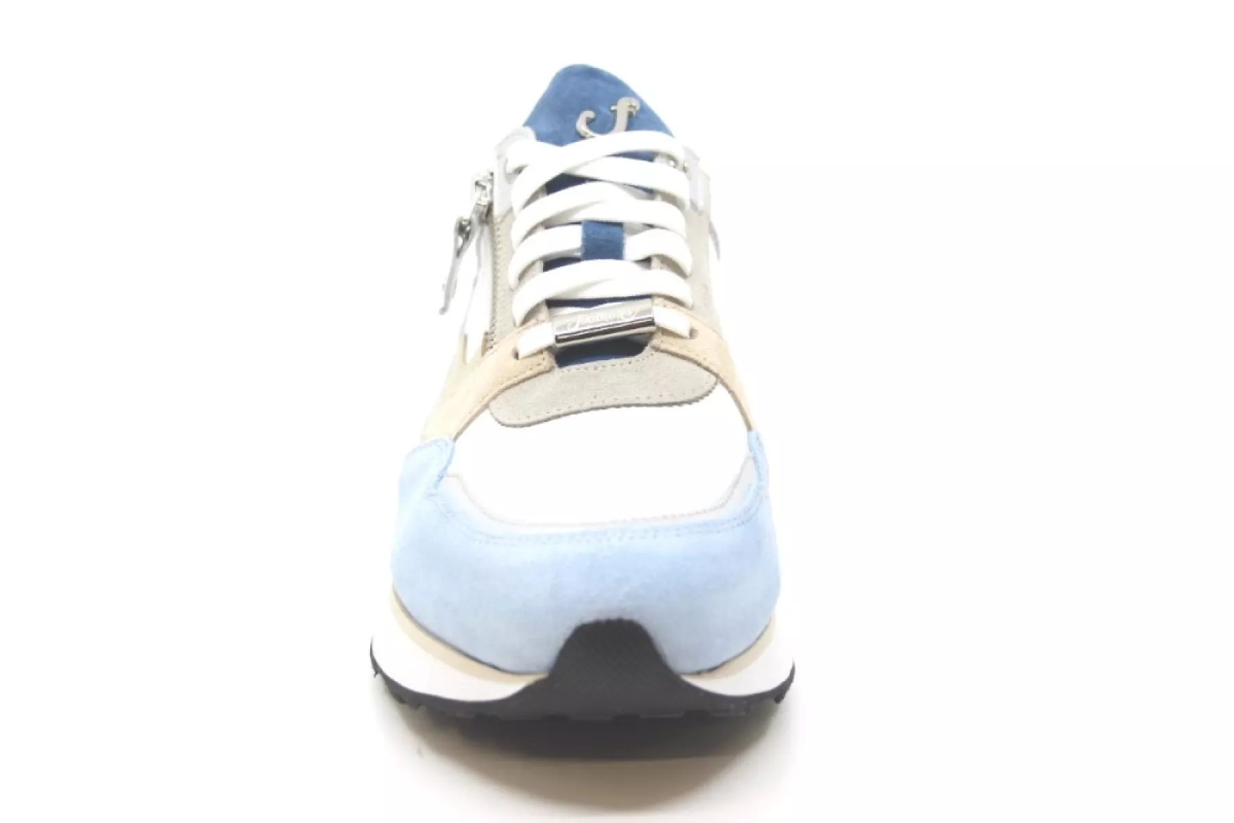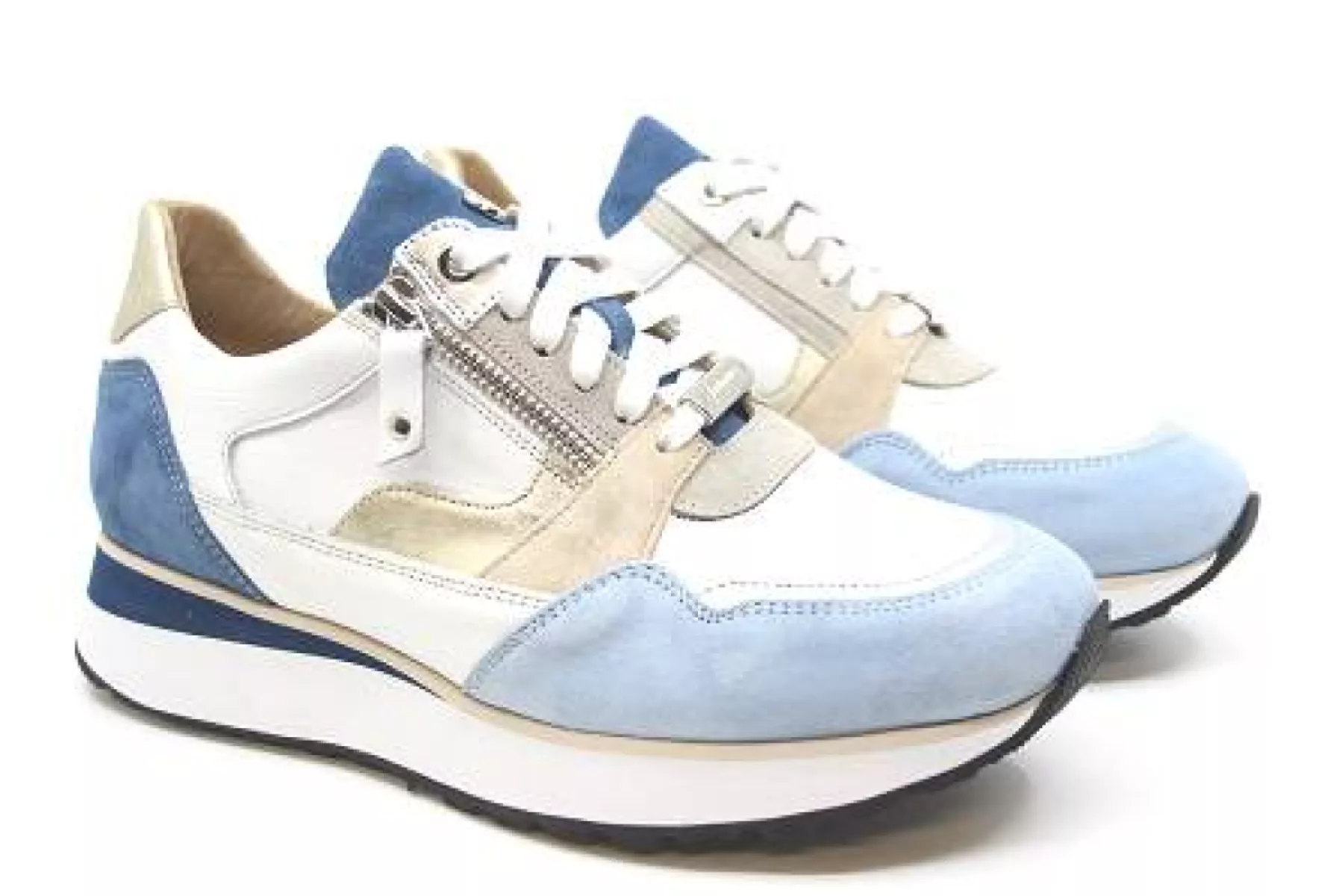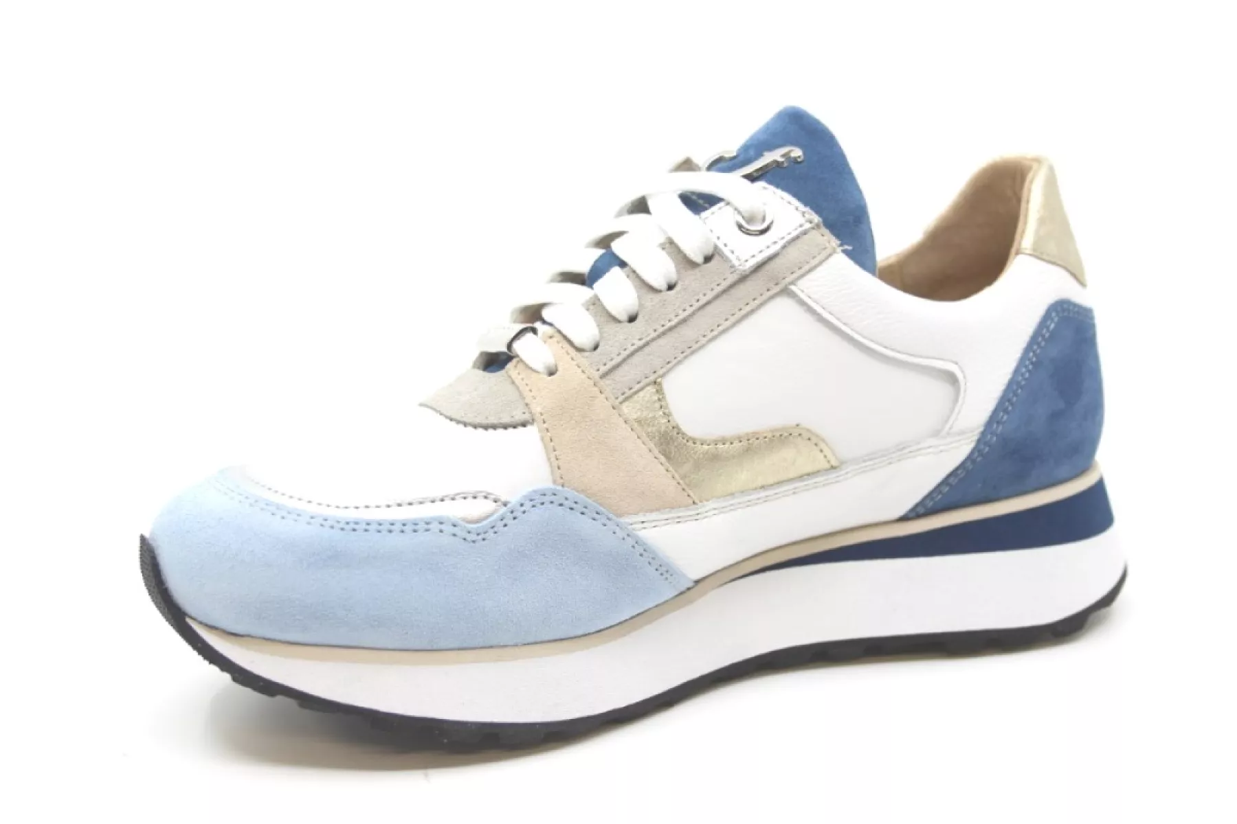 Model Elke van Footnotes is een brede vlotte blauw combi kleurige sneaker. Met een anatomisch gevormd uitneembaar voetbed, dus ook geschikt voor je eigen steunzolen.