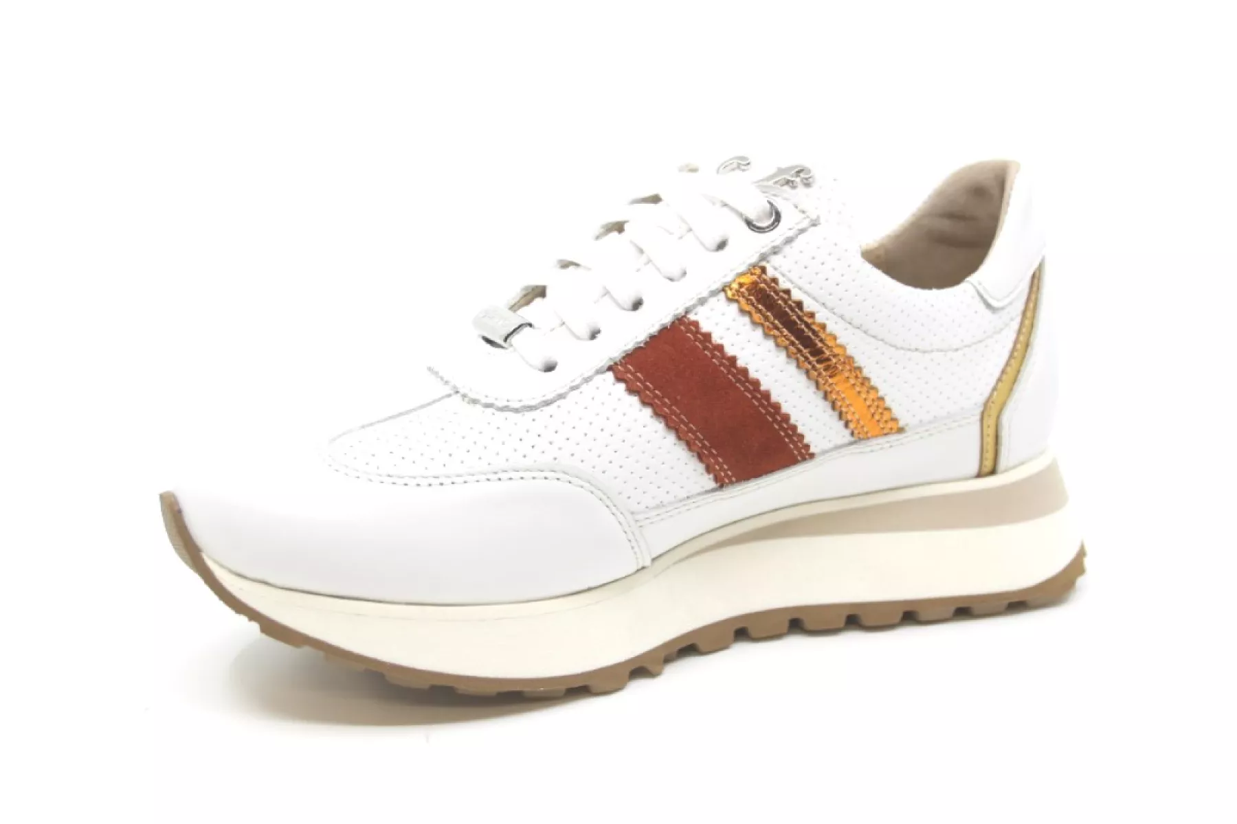 Model Erika van Footnotes is een vlotte brede wit combi sneaker. Met een anatomisch gevormd uitneembaar voetbed, dus ook geschikt voor je eigen steunzolen.