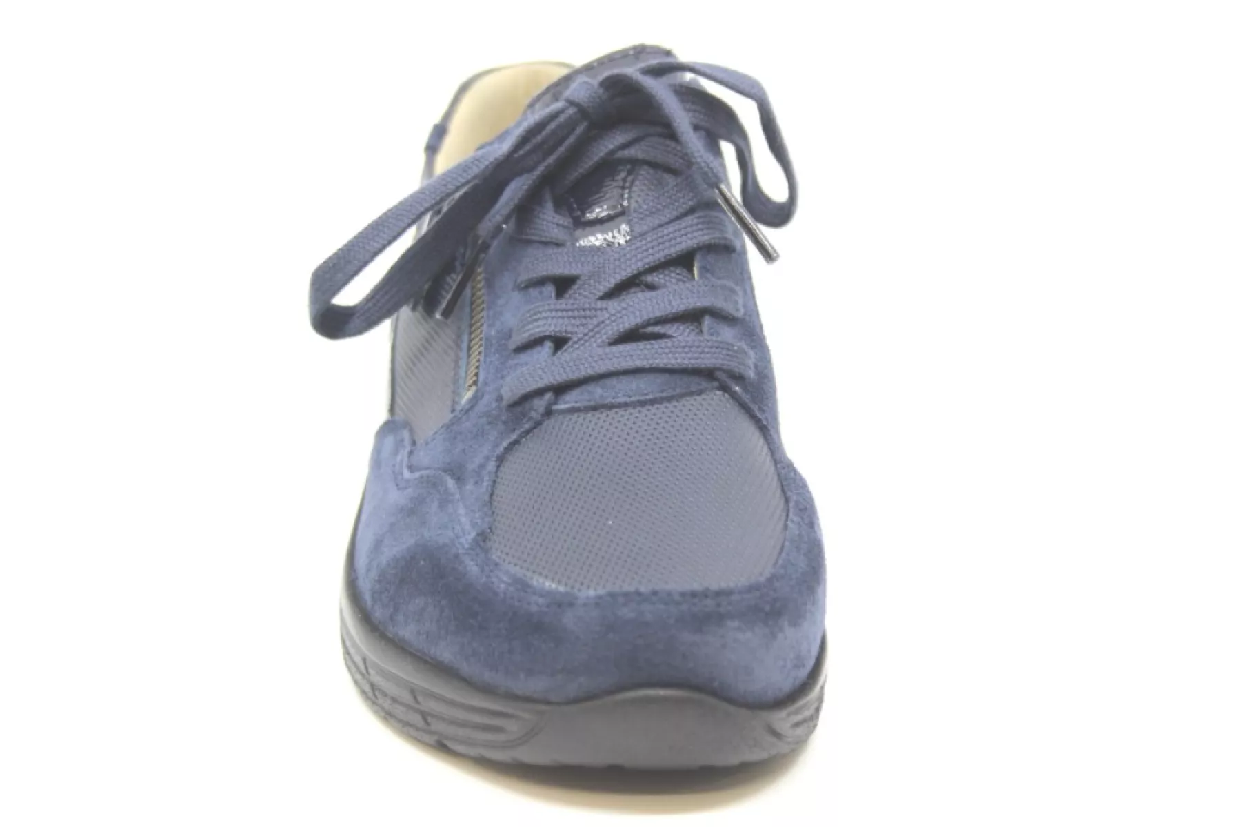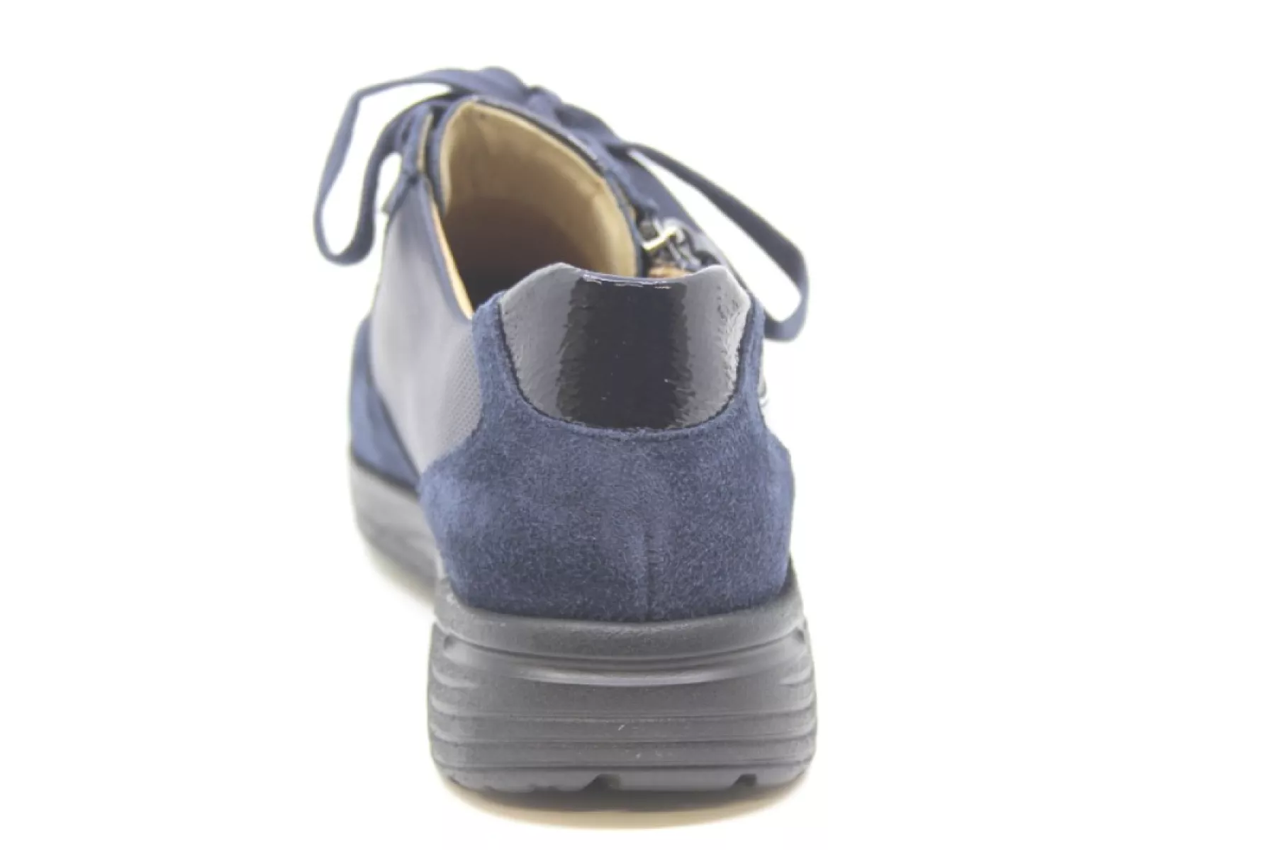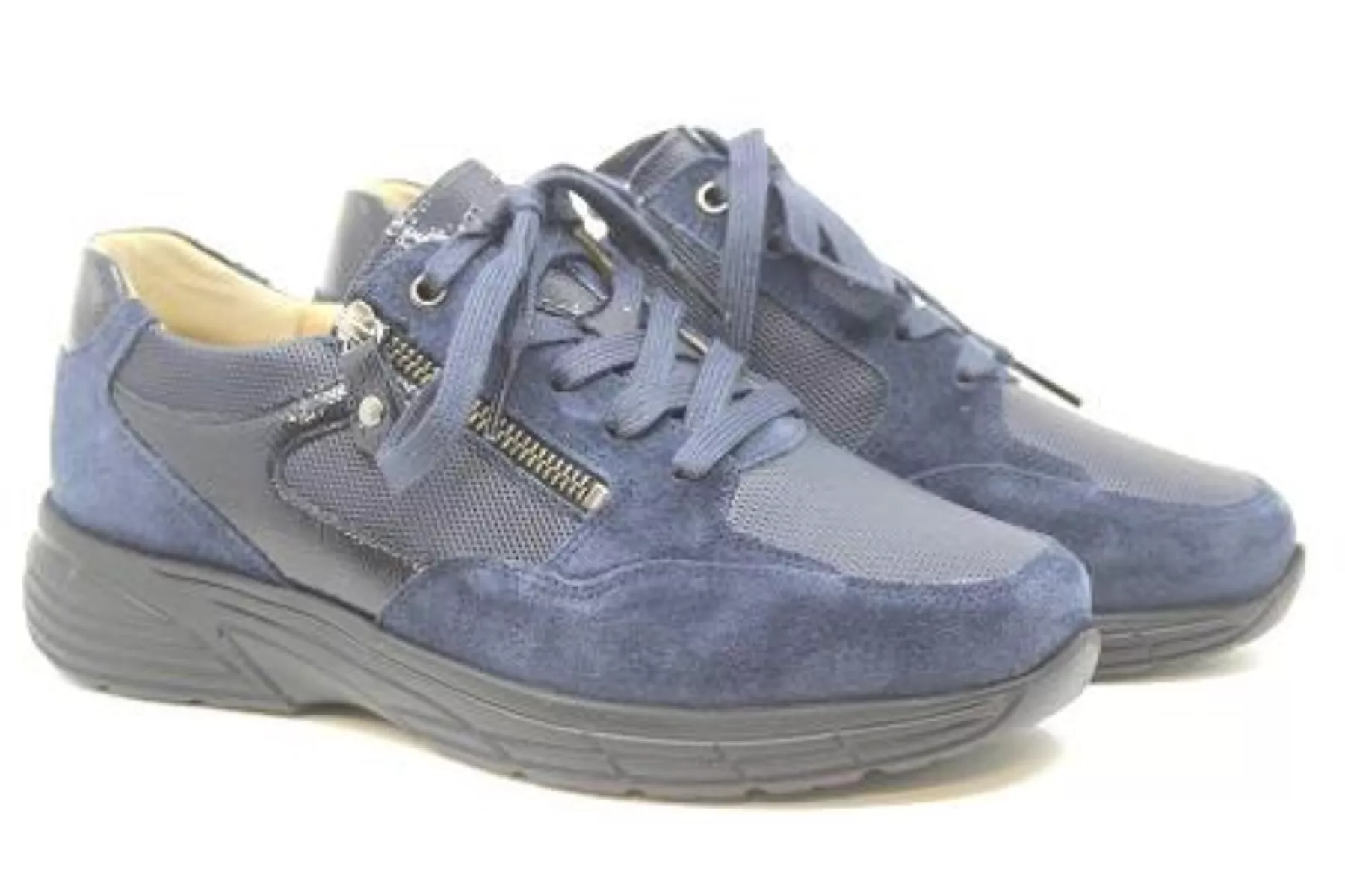 Model Katy Shoe is een comfortabele lichtgewicht brede blauw kleurige sneaker op een klein sleehakje met rits. Met een anatomisch gevormd uitneembaar kurken voetbed, dus ook geschikt voor je eigen steunzolen.