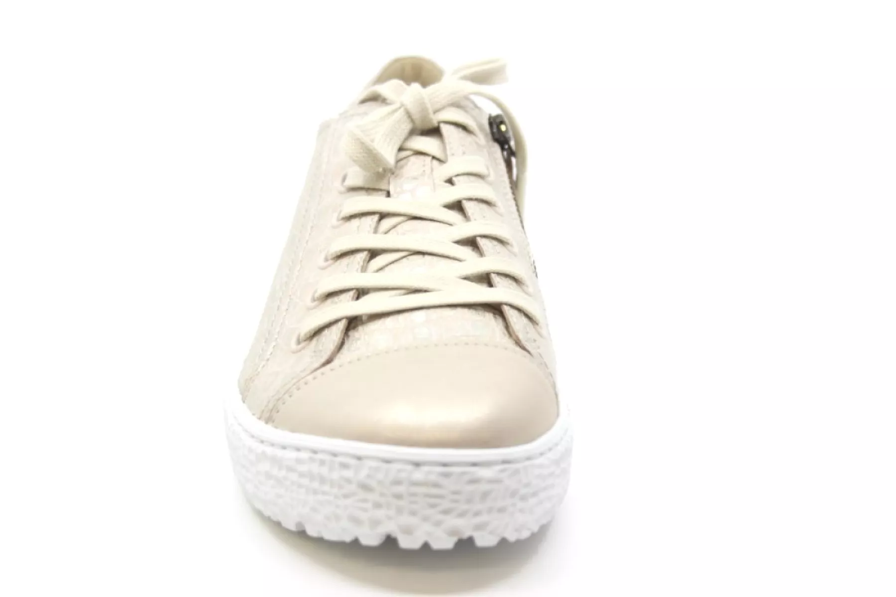 Model Phil Shoe is een comfortabele goud kleurige sneaker/veterschoen met rits. Met een anatomisch gevormd uitneembaar kurken voetbed, dus ook geschikt voor je eigen steunzolen.