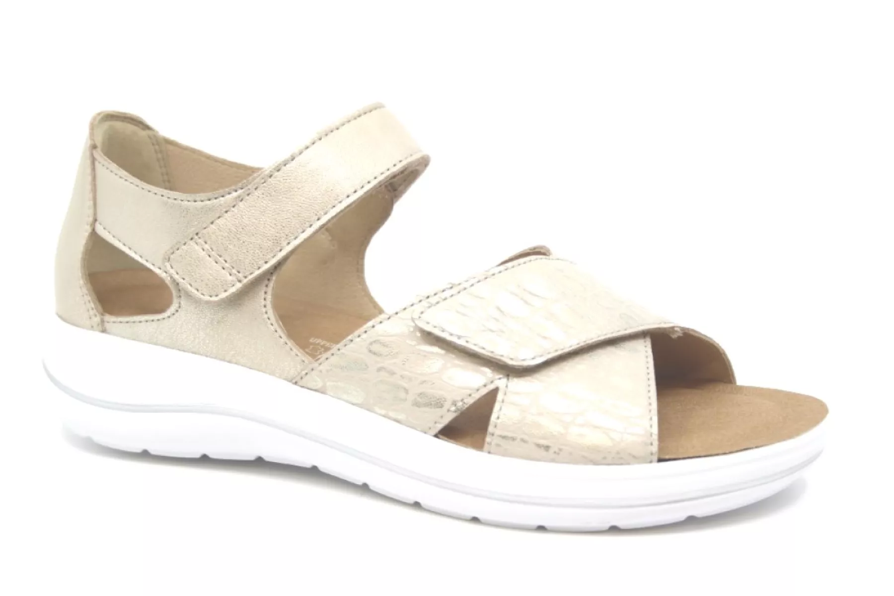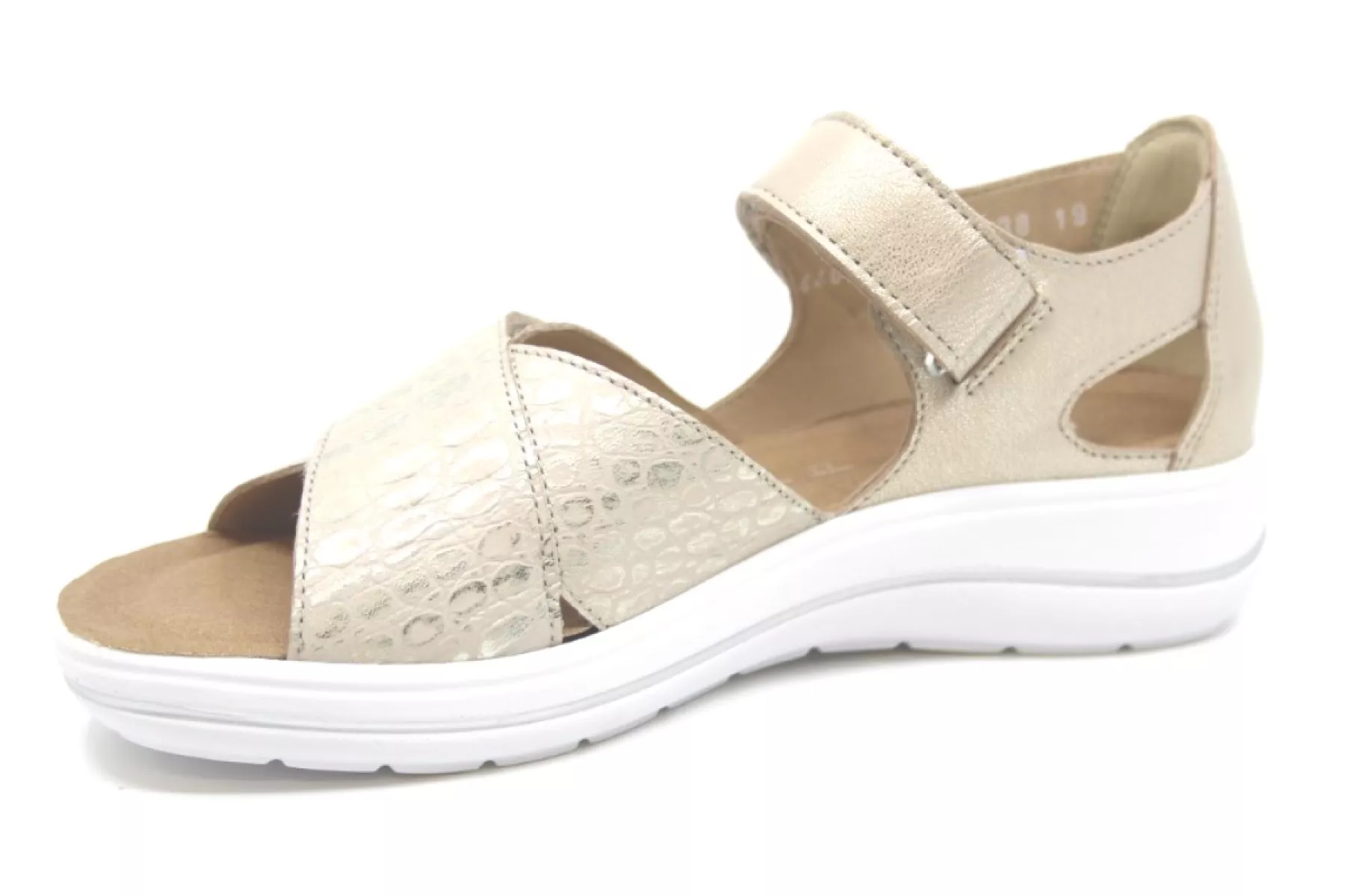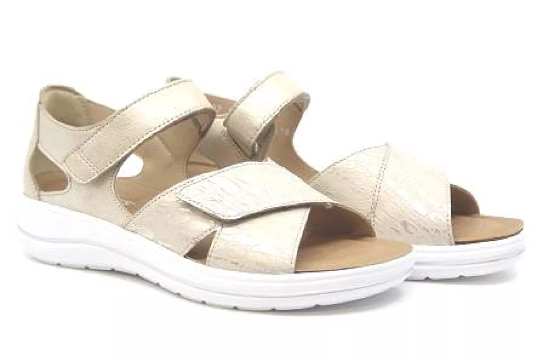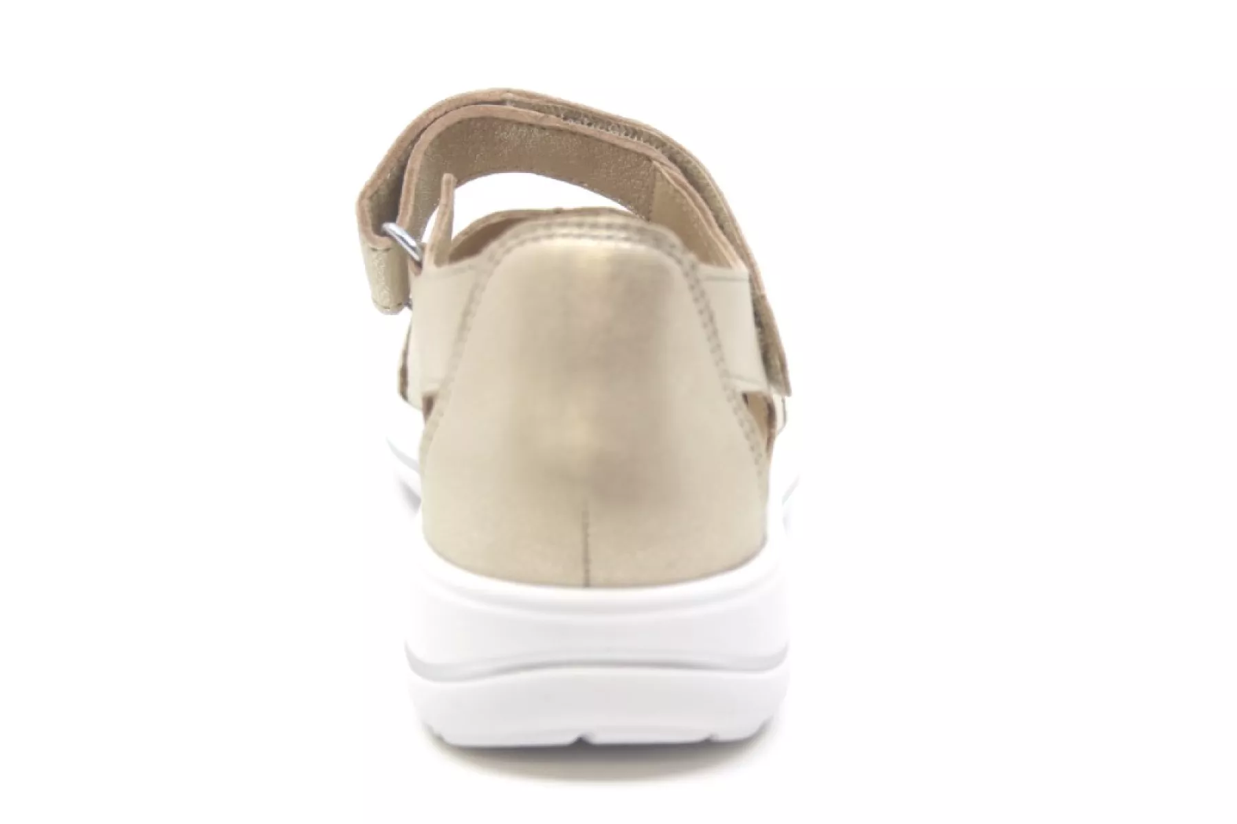 Model 132.2101 POP Sandale is een comfortabele goud kleurige sandaal met dichte hiel, gemaakt van heerlijk zacht leer. Met een anatomisch gevormd uitneembaar kurken voetbed, dus ook geschikt voor je eigen steunzolen.