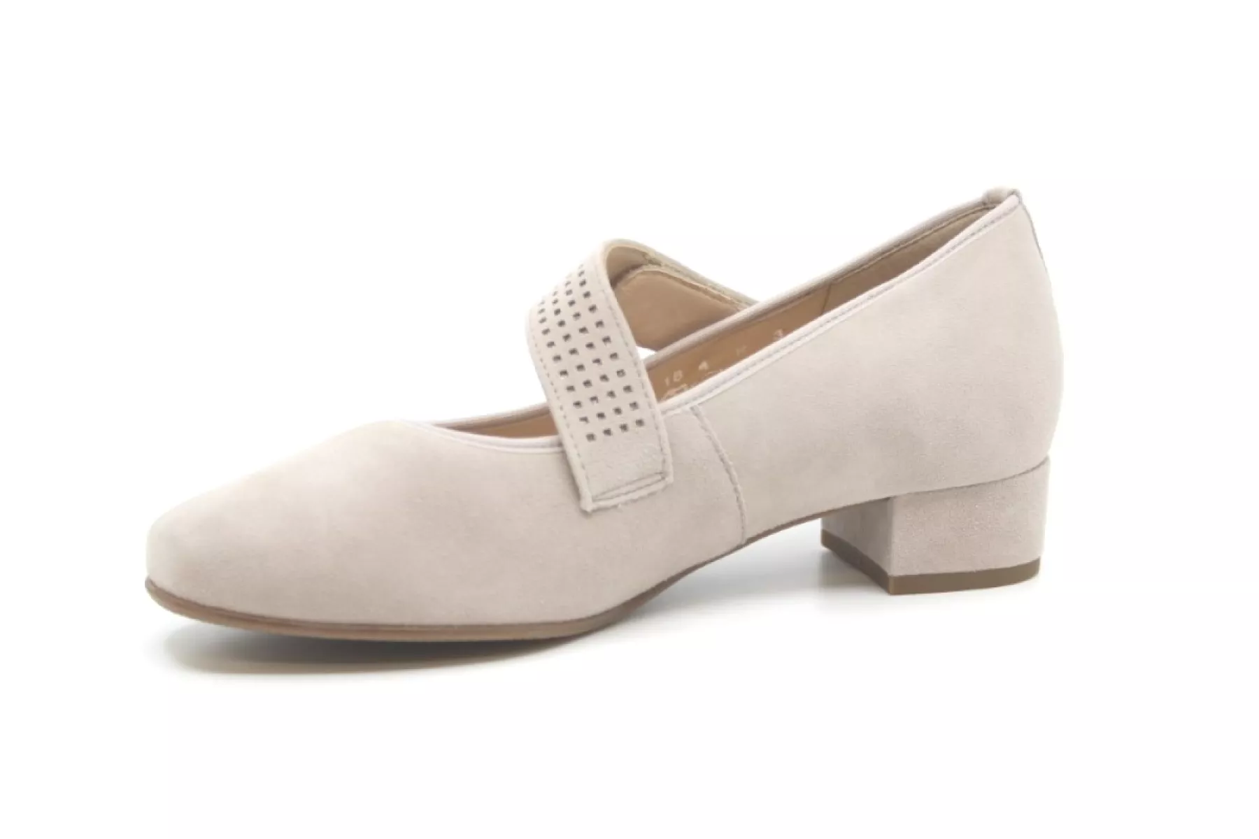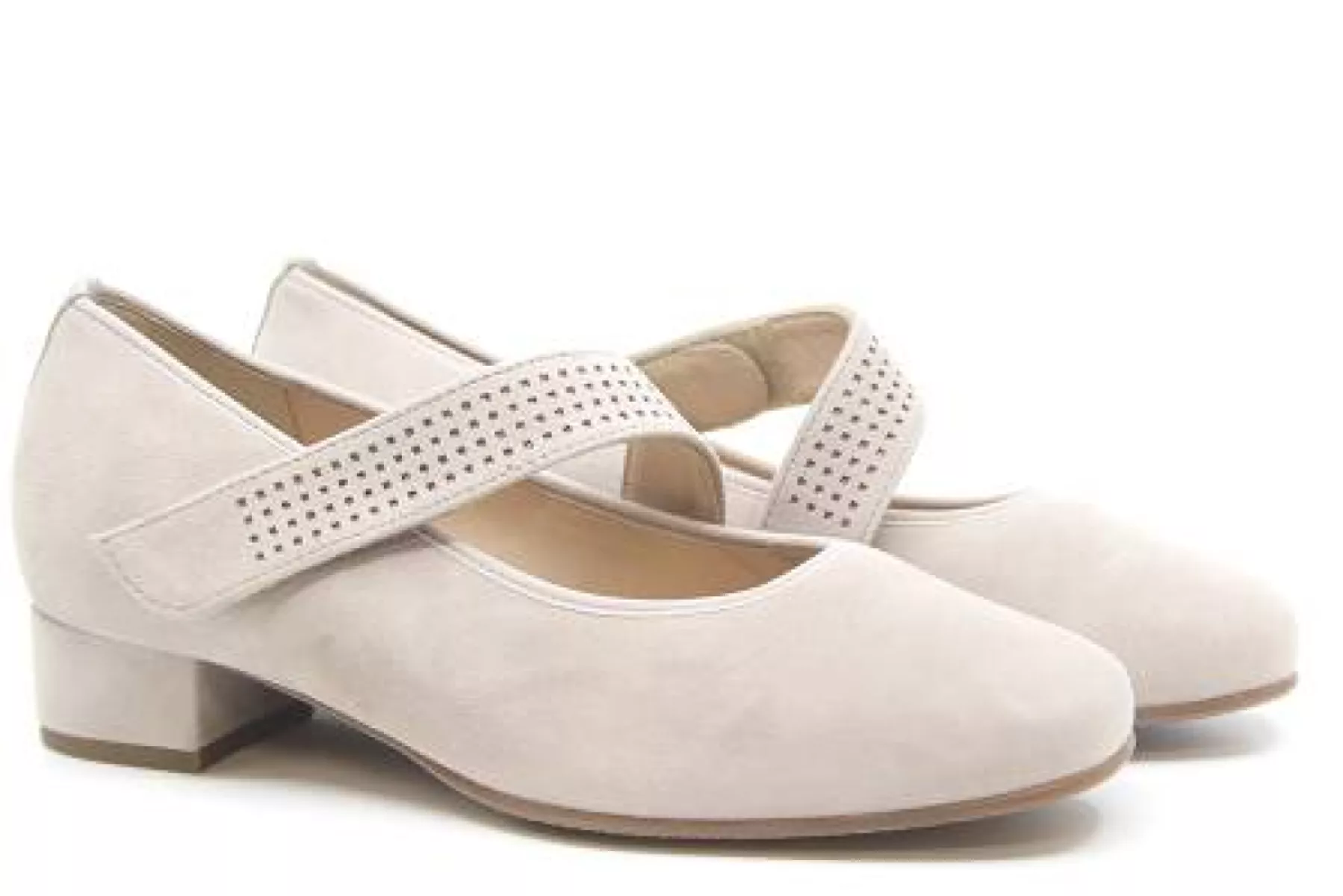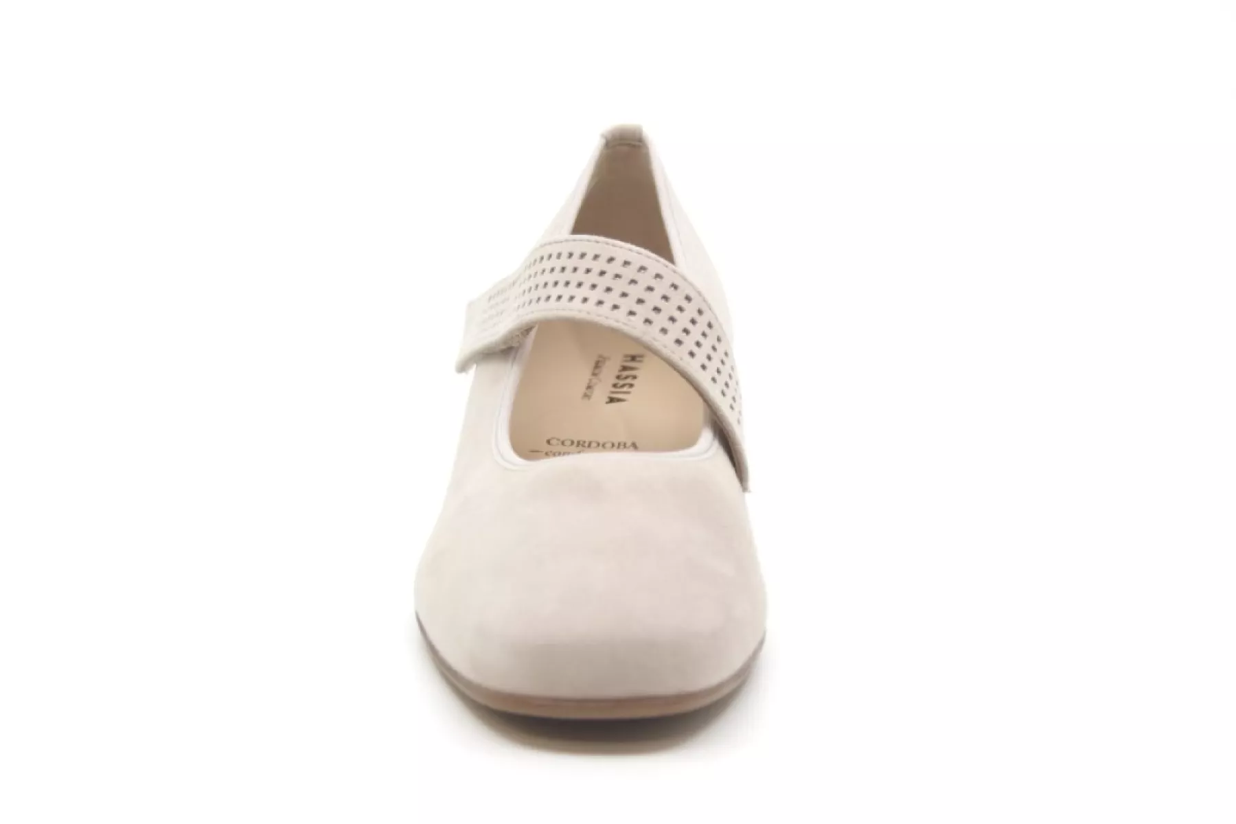 Model 302454 van Hassia is een mooie nette beige suède extra brede bandschoen met een uitneembaar voetbed.