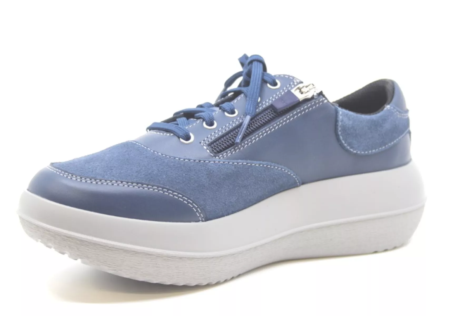 Het model Aarau is een blauw leer combi sneaker van Kybun met een veter- en ritssluiting en voorzien van de unieke zachte Strato luchtkussenzool. Wist je dat deze schoenen maar liefst 58% minder schokbelasting geeft dan reguliere schoenen? Kom Kybun schoenen passen en ervaar dat deze schoenen tal van lichamelijke klachten kan oplossen of verminderen.