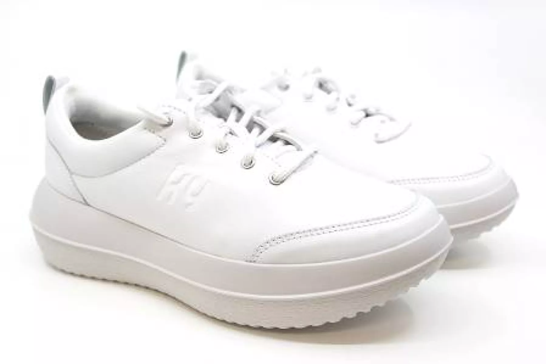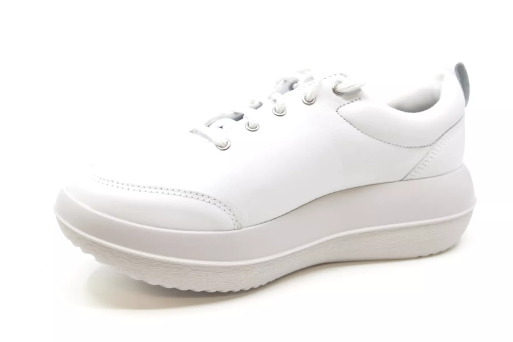 Het model Bauma CL is een witte leren dames sneaker van Kybun met een vetersluiting en voorzien van de unieke zachte Strato luchtkussenzool. Wist je dat deze schoenen maar liefst 58% minder schokbelasting geeft dan reguliere schoenen? Kom Kybun schoenen passen en ervaar dat deze schoenen tal van lichamelijke klachten kan oplossen of verminderen.