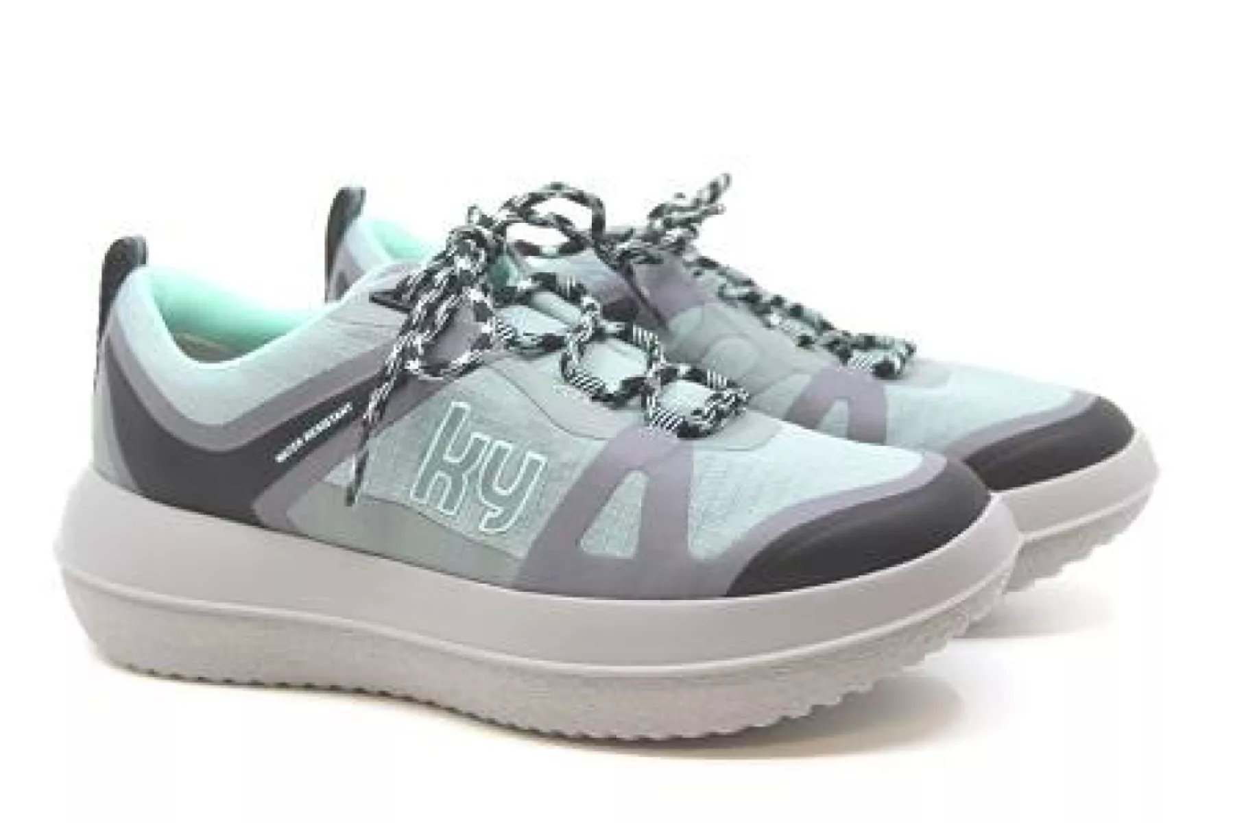 Het model Flims van Kybun is een groen combi lichtgewicht, waterafstotende veterschoen met een duurzaam, naadloos bovenwerk van nylon uit één stuk, versterkt met gelamineerde elementen. Voorzien van de unieke zachte Strato luchtkussenzool. Wist je dat deze schoenen maar liefst 58% minder schokbelasting geeft dan reguliere schoenen? Kom Kybun schoenen passen en ervaar dat deze schoenen tal van lichamelijke klachten kan oplossen of verminderen.