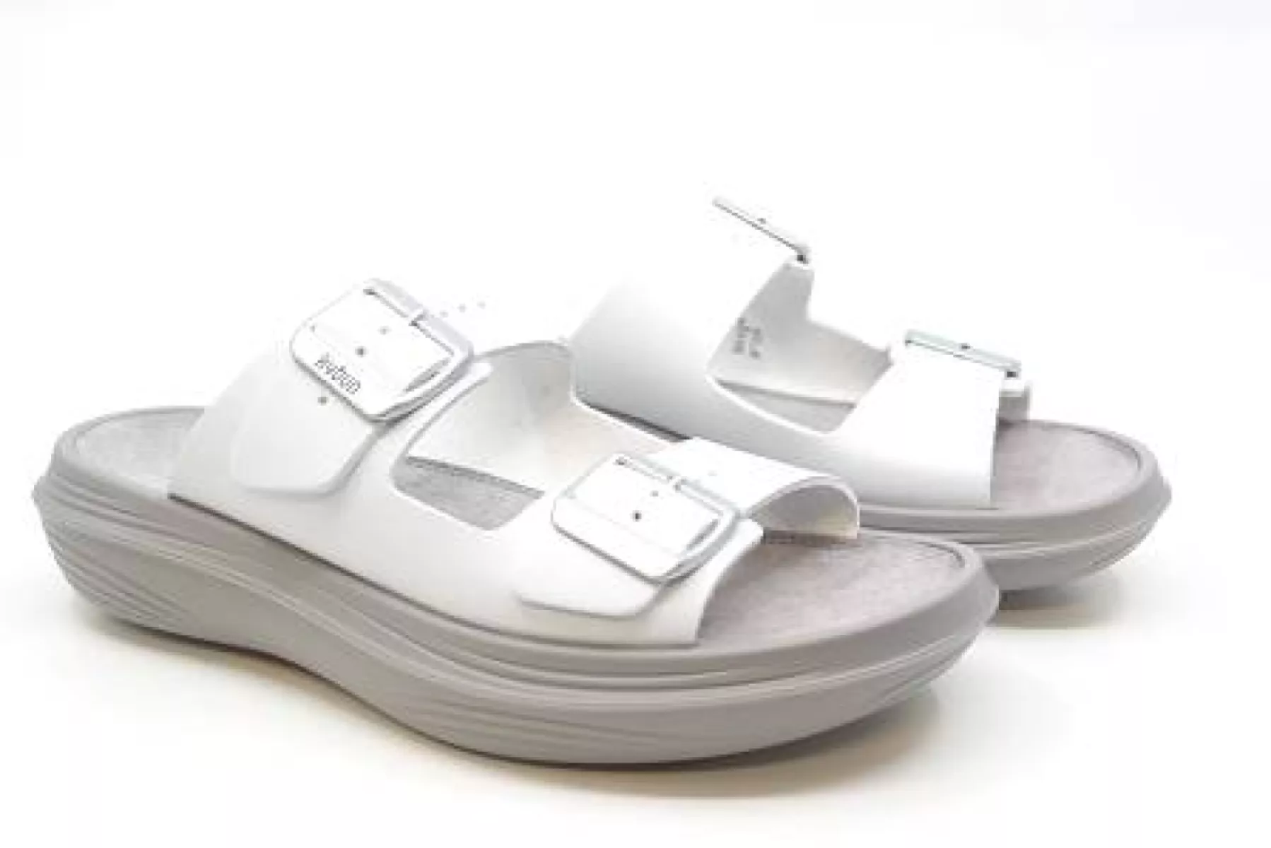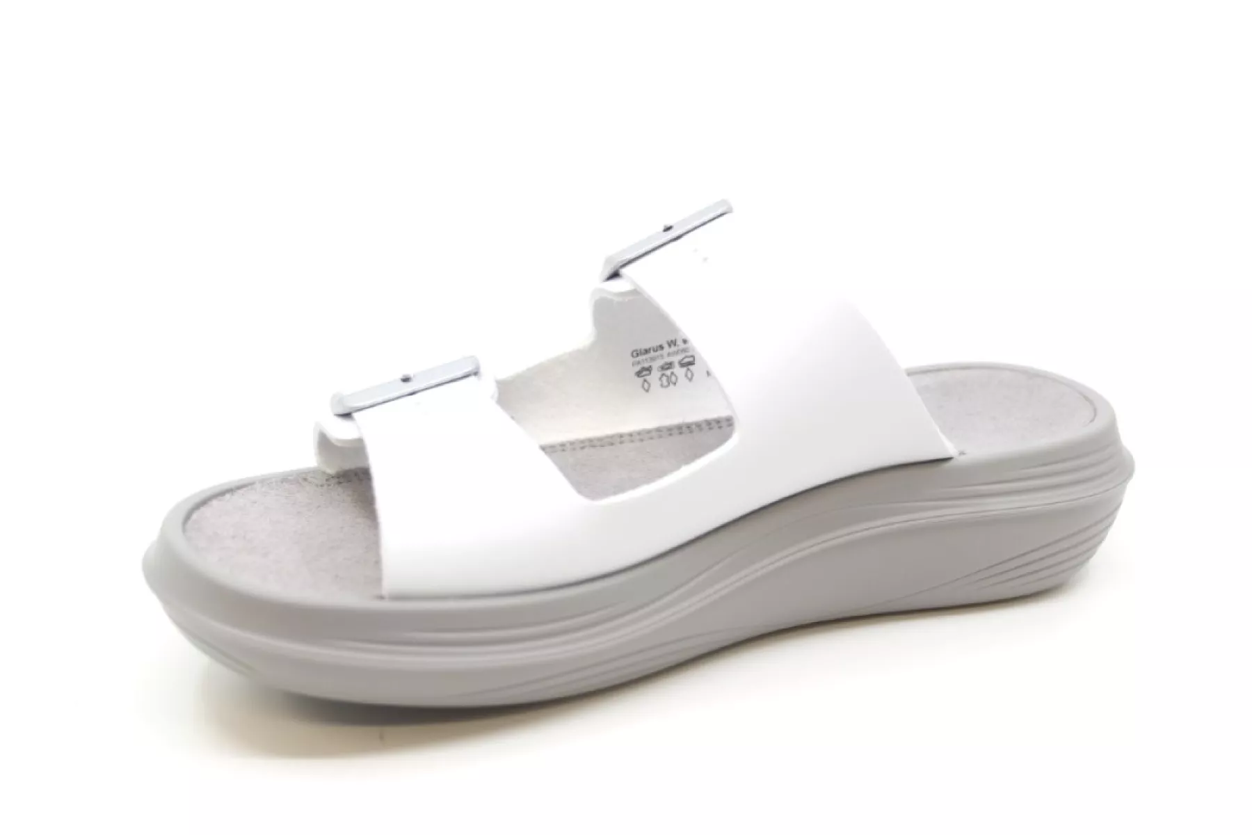 Het model Glarus White is een wit leren slippers van Kybun met een gesp sluiting en voorzien van de unieke zachte Strato luchtkussenzool. Wist je dat deze slippers maar liefst 58% minder schokbelasting geeft dan reguliere slippers? Kom Kybun slippers passen en ervaar dat deze slippers tal van lichamelijke klachten kan oplossen of verminderen.