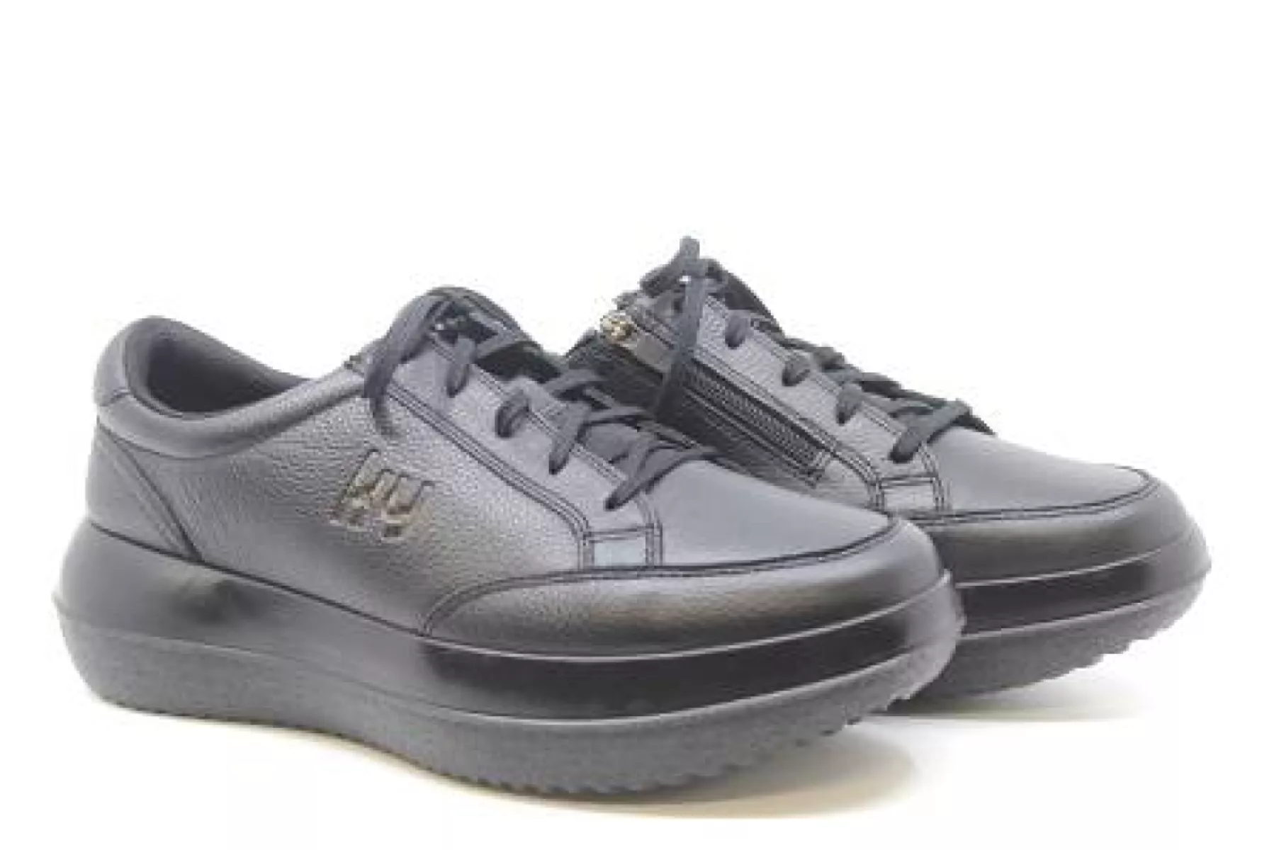 Het model Zurich II is een zwart leren veterschoen van Kybun met rits en voorzien van de unieke zachte Strato luchtkussenzool. Wist je dat deze schoenen maar liefst 58% minder schokbelasting geeft dan reguliere schoenen? Kom Kybun schoenen passen en ervaar dat deze schoenen tal van lichamelijke klachten kan oplossen of verminderen.