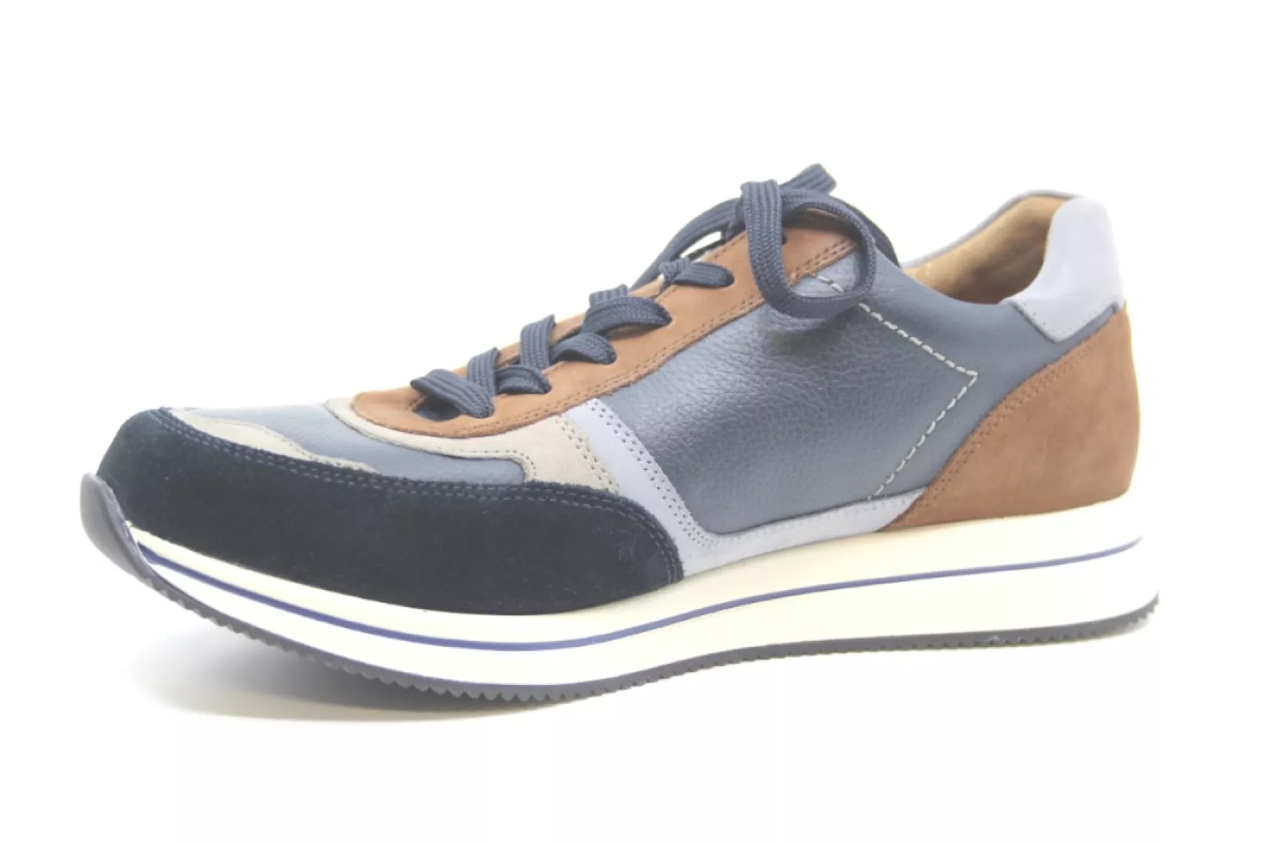 Mephisto Gilford is een comfortabele vlotte blauw combi kleurige sneaker met een uitneembaar voetbed.