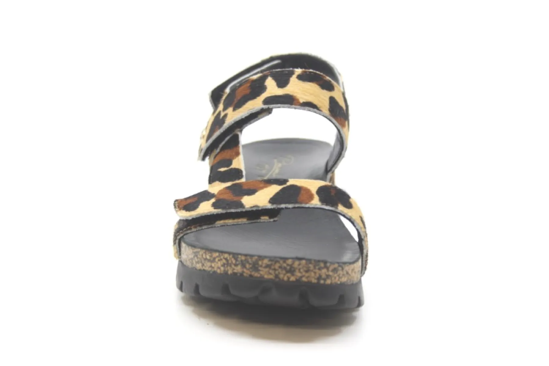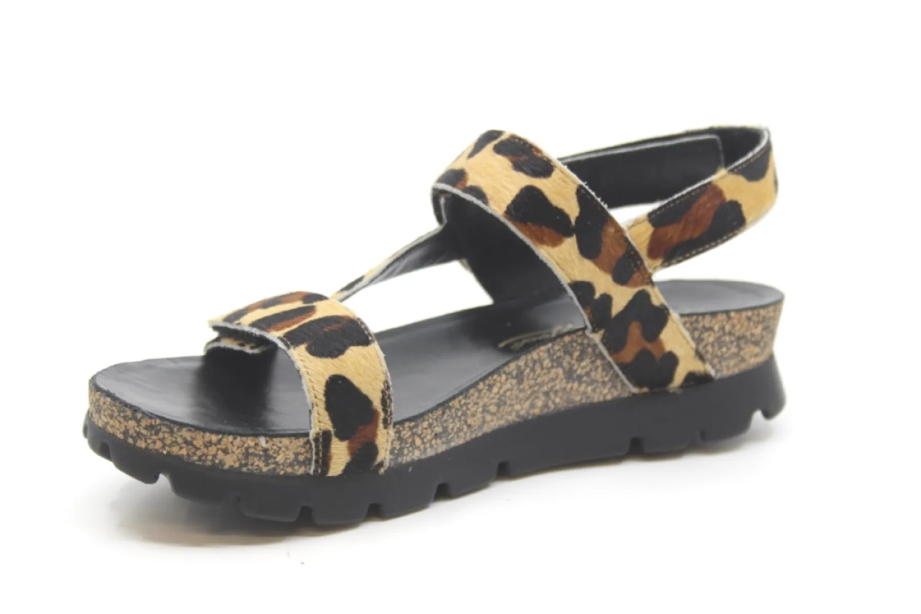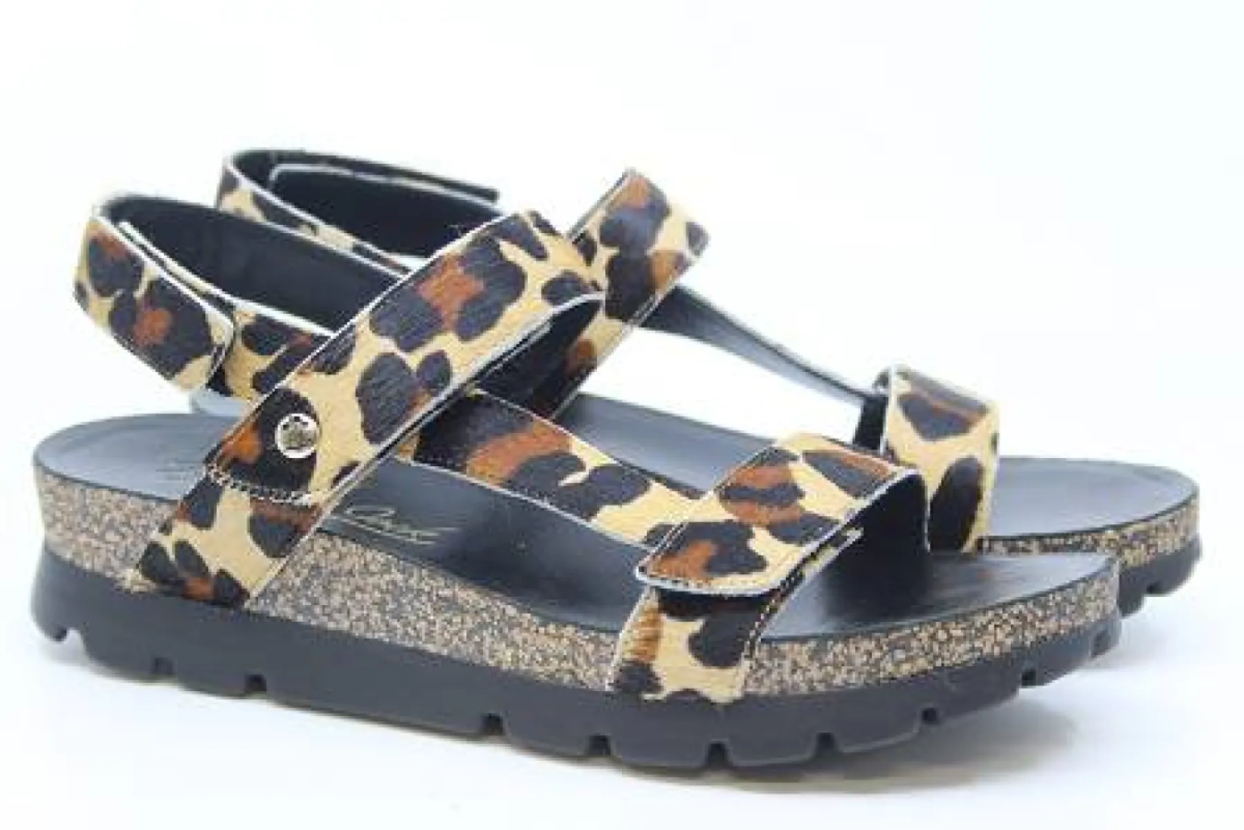 Het model Selma Leopard van Panama Jack is een trendy sandaal in een mooie luipaard print op een oplopende hak van geperst kurk.