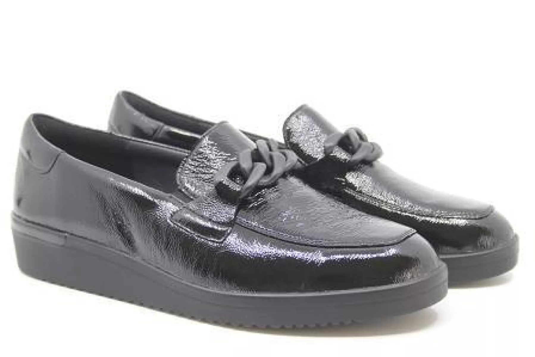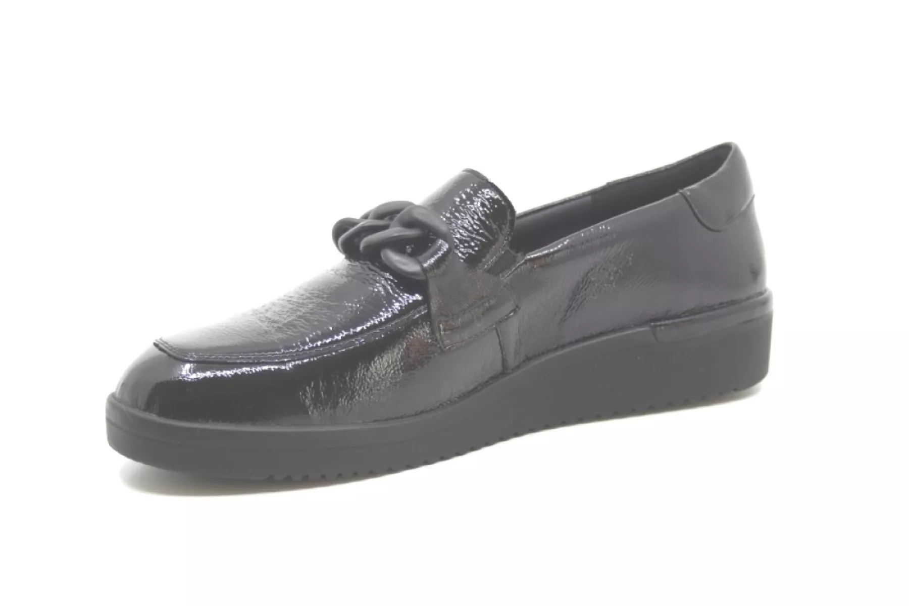 Het model 51013 in wijdte K van Solidus is een comfortabele brede zwart lak instapper met een uitneembaar voetbed. Ben je op zoek naar een instapper waar eventueel ook je eigen steunzool in kan, stop met zoeken en kom model 51013 passen.