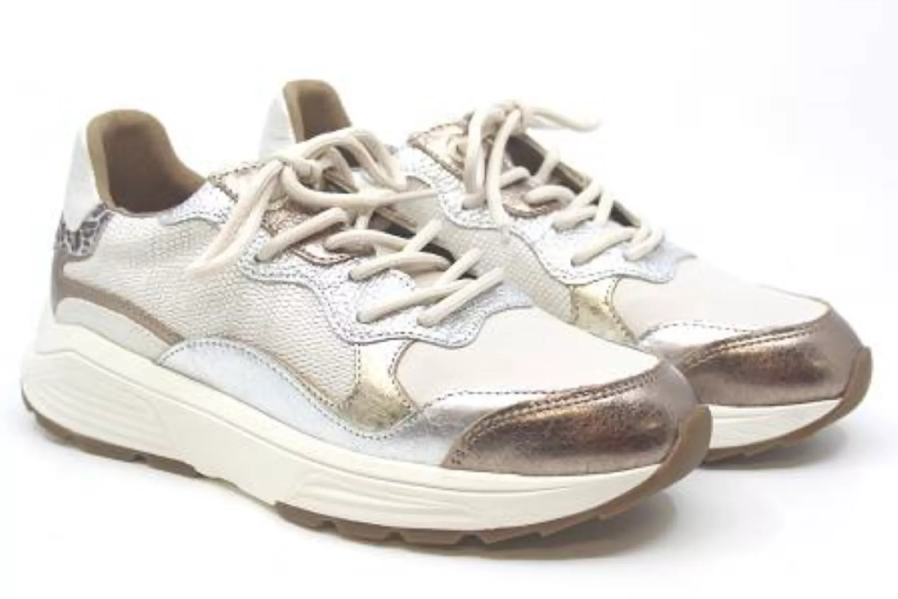 Beige/brons combi dames sneaker uit de Next Generation lijn van Xsensible